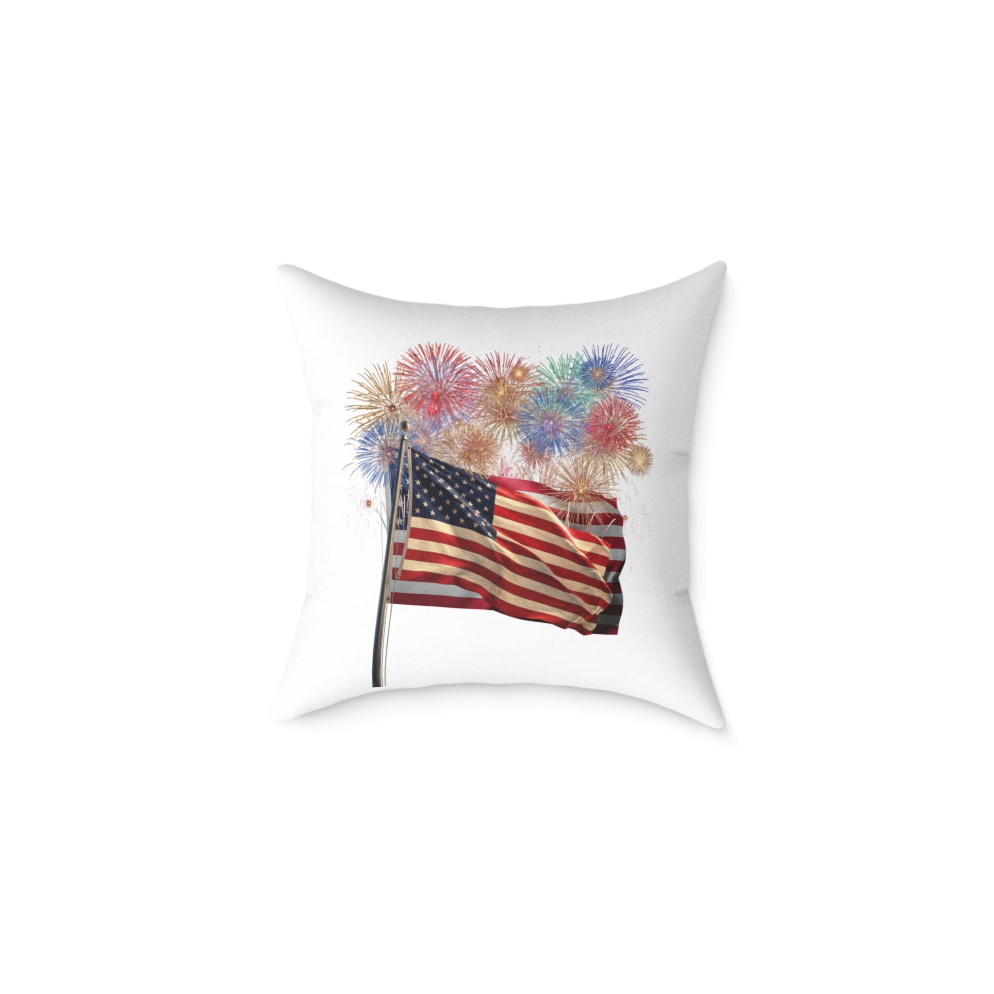 American Flag Pillow with Fireworks — Patriotic Decorative Square Throw Pillow